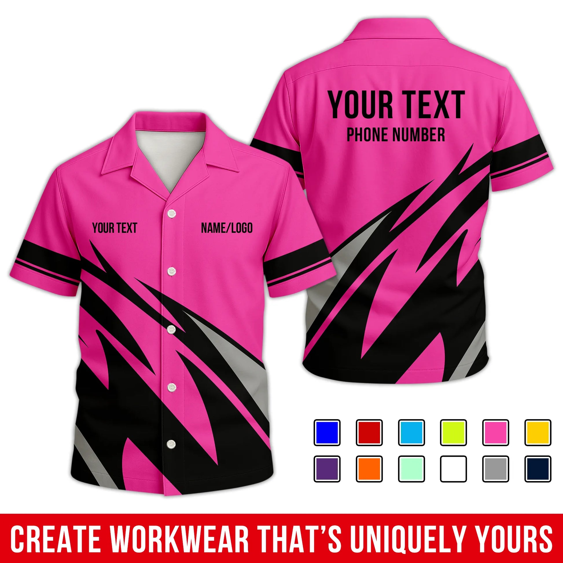 • All-Over Printed Option: Crafted from a high-performance blend of 90% spun polyester, 5% spandex, and 5% cotton. It offers the soft, natural feel of organic cotton with unbeatable durability – no cracking, peeling, or flaking. The front and back designs match closely, turning heads from every angle. Wrinkle-free, soft to the touch, and built to last through long shifts and late nights.