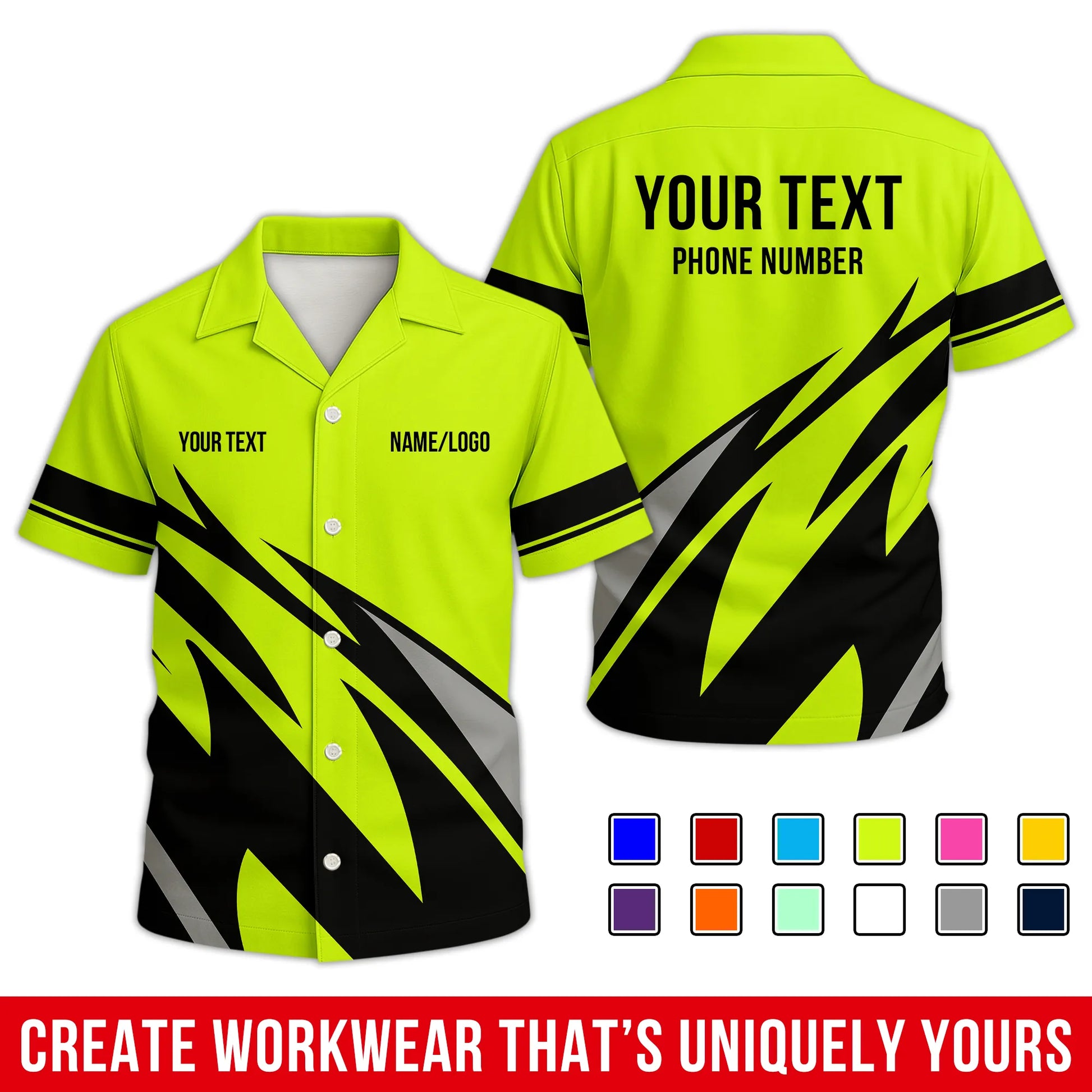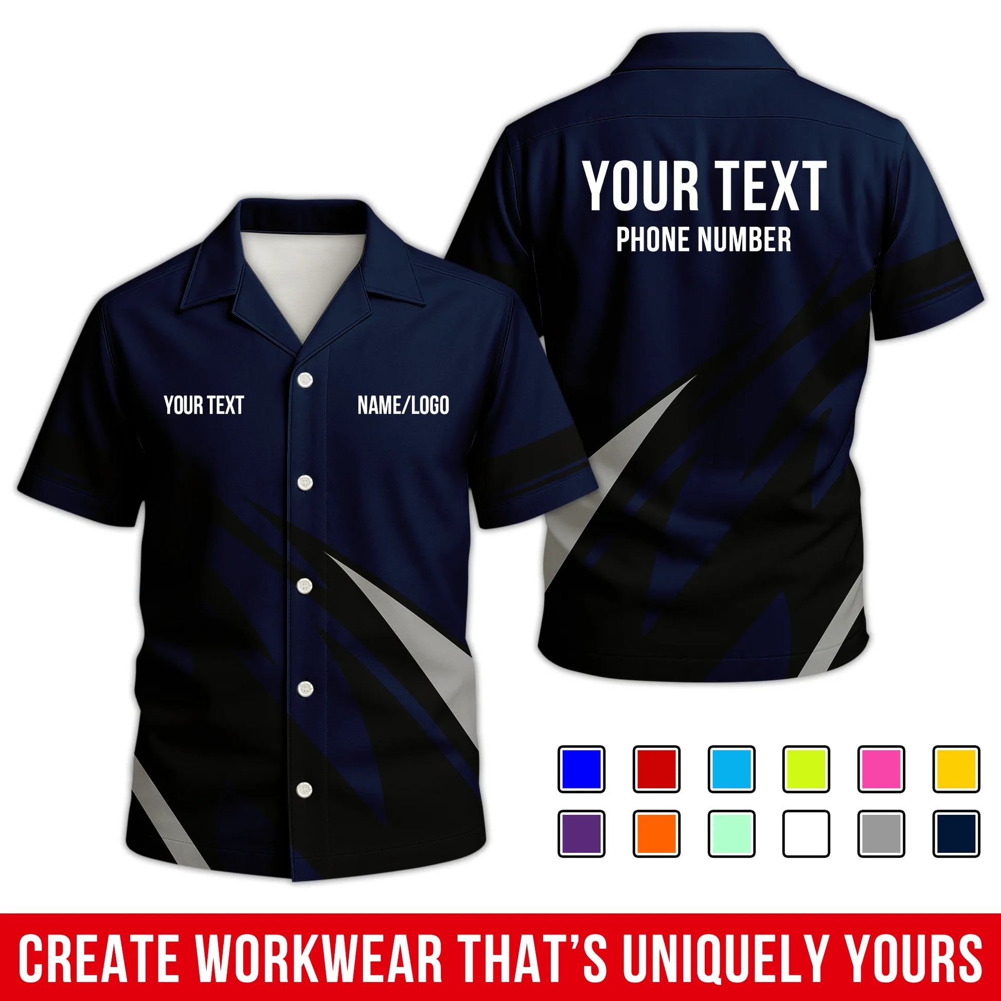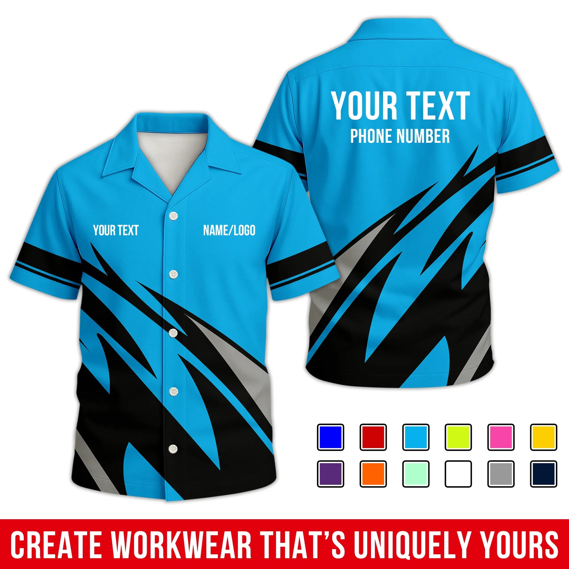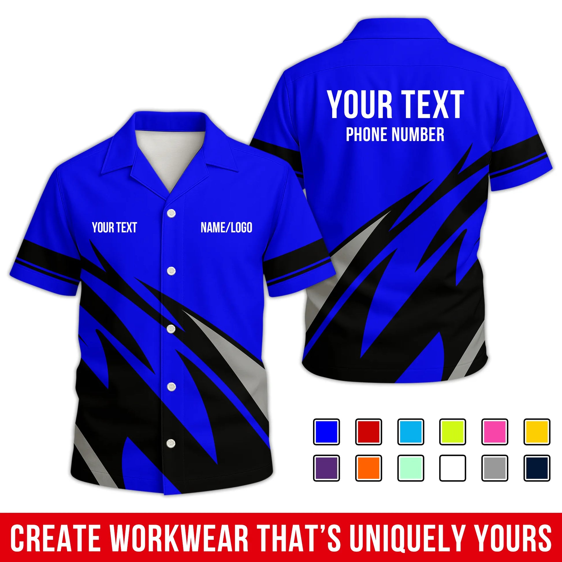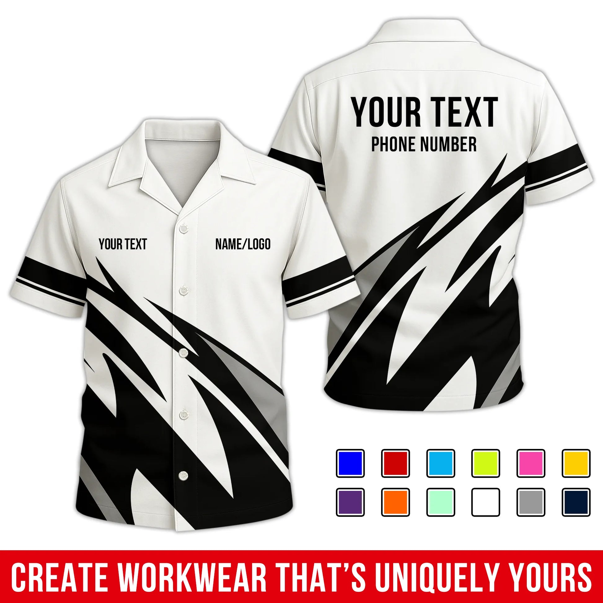 • All-Over Printed Option: Crafted from a high-performance blend of 90% spun polyester, 5% spandex, and 5% cotton. It offers the soft, natural feel of organic cotton with unbeatable durability – no cracking, peeling, or flaking. The front and back designs match closely, turning heads from every angle. Wrinkle-free, soft to the touch, and built to last through long shifts and late nights.